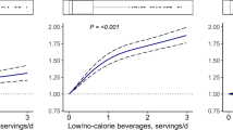 Van Wymelbeke, V., Béridot-Thérond, ME., de La Guéronnière, V. et al. Influence of repeated consumption of beverages containing sucrose or intense sweeteners on food intake. Eur J Clin Nutr 58, 154–161 (2004). https://doi.org/10.1038/sj.ejcn.1601762