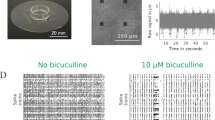 IN view of the recent report that bicuculline1–3 antagonizes the action of γ-aminobutyric acid (GABA) at various sites in the central nervous system4 we have systematically tested this alkaloid, applied by microiontophoresis to neurones in the cerebral cortex of four cats under ‘Dial’ anaesthesia. Two samples of bicuculline were used: the first was obtained from Pierce Chemicals; it was prepared either as a 0.1 M solution in dioxane, or by dissolving at a concentration of 0.05–0.1 M in dilute HCl (final pH 3). The second sample (bicuculline hydrochloride) was kindly given to us by Dr R. Manske (University of Waterloo): this was prepared as in the experiments of Curtis et al.4 at a concentration of 10 mM in 165 mM NaCl (pH 4). One barrel of the multi-barrelled glass micropipettes was filled with these solutions 2–3 days before the experiments. The 0.1 M solutions did not readily pass iontophoretic currents > 30–50 nA (see ref. 4), but very large currents (≫100 nA) could be passed through the 10 mM solutions for several tens of minutes.