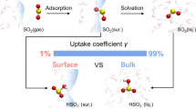Liss1 has calculated the rate of exchange between sulphurdioxide and environmental water. We report here experimental work which verifies the results of his calculations. The rate of solution of SO2 at 20° C was examined by passing a nonlaminar flow of air (bulk velocity ∼1.5 cm s−1) and 35SO2 at concentrations around 300 µg m−3 over stirred sodium perchlorate solutions. The pH values of these solutions were adjusted by addition of sodium hydroxide or perchloric acid because ionic strength exerts little effect on rate of uptake. Oxidation of the sulphur (IV) anions in sodium perchlorate solution is small over the time scale involved (unpublished data of P. B.).