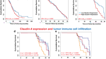 Multivariate Cox analysis revealed that lymphovascular invasion and reduced claudin-1 staining were associated with recurrent disease, P=0.01 and 0.0001, respectively, whereas only reduced claudin-1 expression correlated with poor survival (P=0.0001). Kaplan–Meier plots illustrating the association of claudin-1 expression with recurrence and survival are shown in Figure 3a and b.