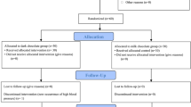 There is some speculation that dietary flavonoids from chocolate, in particular (−)epicatechin, may promote cardiovascular health as a result of direct antioxidant effects or through antithrombotic mechanisms1,2,3. Here we show that consumption of plain, dark chocolate (Fig. 1) results in an increase in both the total antioxidant capacity and the (−)epicatechin content of blood plasma, but that these effects are markedly reduced when the chocolate is consumed with milk or if milk is incorporated as milk chocolate. Our findings indicate that milk may interfere with the absorption of antioxidants from chocolate in vivo and may therefore negate the potential health benefits that can be derived from eating moderate amounts of dark chocolate.