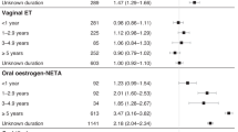 As shown in Table 2, half of control women reported ever using low progestin/low oestrogen potency preparations (50%); however, approximately a third of women took high oestrogen potency (37%, including combination pills with either high or low progestin potency) or high progestin potency pills (30%, including combination pills with either high or low oestrogen potency). Only 12% of women ever used combination oral contraceptives that were of both high progestin and oestrogen potencies. Similar proportions of women took mestranol (55%) and ethinyl oestradiol-containing pills (56%), whereas ever use of preparations containing the progestin norethindrone was reported by the majority of women (61%).