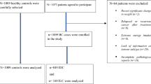 The Singapore Chinese Health Study has been described previously (Hankin et al, 2001). Briefly, the cohort was drawn from permanent residents or citizens of Singapore living in government-built housing estates (where 86% of the Singapore population lived during the study enrollment period). The eligible age range for cohort enrollment was 45–74 years, and was restricted to the two major dialect groups of Chinese in Singapore, Hokkien, and Cantonese. Between April 1993 and December 1998, 63 257 subjects (about 85% of eligible subjects) were recruited, of whom 56% (n=35 298) were women. The 564 women who reported a history of cancer at baseline were excluded from the present study. The study was approved by the institutional review boards of the University of Southern California and the National University of Singapore.