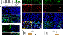 DNA synthesis (LI(%)) and % of proTGFα-pos nuclei in cultured GSTp− and GSTp+ hepatocytes. 3H-thymidine was added 24 h before harvesting of cells. The % of proTGFα-pos nuclei was determined after 48 h of culture. Symbols: Δ or open columns, GSTp− cells; ▪ or dark columns, GSTp+ cells. In each of the experiments, 2000 nuclei of GSTp− cells and 600 nuclei of GSTp+ cells were evaluated. Means±s.d. are given from separate experiments with cultures from five rats. Statistics of LI(%) in GSTp− vs GSTp+ cells over time-course by Kruskal–Wallis test: (a) P<0.001. Statistics of LI(%) in GSTp− cells vs GSTp+ cells at the last time point of evaluation by Wilcoxon's test: (b) P<0.01. Statistics of % of proTGFα-pos nuclei in GSTp− vs GSTp+ cells by Wilcoxon's test: (c) P<0.001.