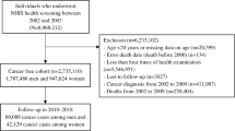Among cases, the mean age at cancer diagnosis was 67.4 (s.d.=8.0) years and the mean time interval between entry into the study and cancer diagnosis was 5.5 years (range, <1 month to 11.6 years). Within the cohort, the age-adjusted incidence rate of colorectal cancer was 155 per 100 000 person-years (197 per 100 000 in men and 122 per 100 000 in women).