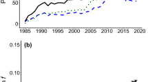 Theory suggests that females should not mate with their closest relatives unless the cost of inbreeding is less than 0.33 (Smith, 1979). In addition, an increased probability of extinction occurs just below intermediate levels (F=0.30–0.40) of inbreeding (Frankham, 1995b). We found very high mean estimates of inbreeding depression for species measured in the wild. For δ estimates, mean inbreeding depression ranged from 0.197 (poikilotherms) to 0.268 (homeotherms) (Table 1; 30% of estimates >0.33). In addition, mean (±SE) δ estimates that were significantly different from zero were 0.509 ± 0.081 for homeotherms, 0.201 ± 0.039 for poikilotherms and 0.331 ± 0.038 for plants. Most of these estimates of inbreeding depression are sufficiently high in magnitude (>0.33) to be considered biologically important (see Smith, 1979; Frankham, 1995b). In addition, most of the traits (80%), are directly associated with fitness.