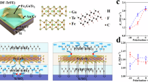 In 2-2 horizontal heterostructures containing ultrathin ferromagnetic films, an electric field could result in the accumulation of charge (e.g. spin-polarized electrons or holes) at the interface, which produces a change in the interface magnetization as a consequence of spin-dependent screening of the electric field. Recently, Weisheit et al.37 observed a coercivity change of up to 4.5% in 2 nm-thick FePt films with the application of voltage. They attributed the electric field-induced modification of magnetocrystalline anisotropy to a change in the number of unpaired d electrons under the applied electric field. However, a liquid electrolyte is required in order to apply a very high electric field at the surface in their system. Recently, Maruyama et al.38 improvement on this by building all-solid-state ultrathin Fe(001)/MgO(001) junctions in which a large change (∼40%) in magnetic anisotropy could be induced by applying a high electric field (about 100 mV nm–1). They tentatively attributed the effect to a change in the relative occupation of the 3d orbital of iron atoms adjacent to the MgO barrier.
