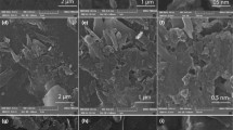 X-ray diffraction (XRD) spectroscopy was performed using a Rigaku D/max 2550V X-ray diffractometer (D/max 2550V, Rigaku, Tokyo, Japan) using Cu-Kα irradiation (λ=1.5406 Å). The operating voltage and current were maintained at 40 kV and 300 mA, respectively. The morphologies and the structure of the products were characterized using a high-resolution field emission scanning electron microscope (S-4800, Hitachi, Tokyo, Japan) and a transmission electron microscope (2100F, JEOL, Tokyo, Japan). Atomic force microscopy images were recorded using a Bruker Dimension 5000 Scanning Probe Microscope in tapping mode (Dimension 5000, Bruker, Camarillo, CA, USA). Raman spectroscopy measurements were performed using a Renishaw Via laser micro-Raman system (Renishaw, Gloucestershire, UK) at an excitation wavelength of 532 nm. The silicon peak at 520 cm−1 was used as a reference. Fourier transform infrared (FTIR) spectra were collected using a Thermo Nicolet NEXUS-670 spectrometer (Nicolet NEXUS-670, Thermo Scientific, Waltham, MA, USA). The KBr pellets for FTIR measurements were prepared by pressing the films and KBr powders using a hand press. The films were supported by transparent polyethylene terephthalate films. X-ray photoelectron spectroscopy measurements were performed using a Kratos AXIS-ultra spectrometer (AXIS-ultra DLD, Kratos, Manchester, UK) equipped with a monochromatic Al-Kα X-ray radiation source (1486.71 eV). The dielectric properties of the composite films on fluorine-doped tin oxide-coated glass were measured using a semiconductor device analyzer (E4980A, Agilent, Santa Clara, CA, USA). These measurements were collected at a voltage of 0.1 V and a frequency of 1 kHz.