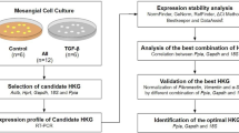 Subconfluent glomerular mesangial cells were serum-starved for 48 h and pretreated with atRA with subsequent stimulation of TGF-β1 and Ang II. Protein expressions of cell-associated fibronectin and PAI-1 in glomerular mesangial cells were evaluated by Western blot analysis. mRNA expression of RA receptors in glomerular mesangial cells was examined by RT-PCR.