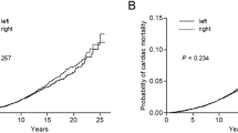 A total of 558 871 women were included in the analysis. Similar proportions of women with left-sided and right-sided breast cancer were recorded as receiving radiotherapy (left-sided: 45.8% (130 285 women), right-sided: 46.2% (126 691 women) (Table 1)). For women not recorded as receiving radiotherapy, there was little evidence that mortality from heart disease differed in women with left-sided and right-sided cancer (cardiac mortality ratio, left-sided vs right-sided: 1.02, 95% confidence interval (CI) 0.99–1.06, 2p=0.16). However, for women recorded as receiving radiotherapy, there was an excess of cardiac deaths following left-sided cancer (cardiac mortality ratio, left-sided vs right-sided: 1.08, 95% CI 1.03–1.14, 2p=0.002).