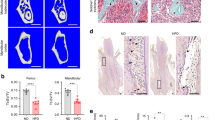 Tibiae were fixed for 36 h in 4% paraformaldehyde buffered with 0.1 mol·L−1 phosphate buffer (pH 7.4) and decalcified in 10% EDTA at 4 °C for 2 weeks. The tissues were then processed and embedded in paraffin. Four-micron sections were cut from each specimen and stained with haematoxylin and eosin for routine histological examination. Osteoclasts were detected via histochemical analysis of tartrate-resistant acid phosphatase (TRAcP), using naphthol AS-MX phosphate as substrate and fast red violet Luria-Bertani salt (both from Sigma Chemical, St. Louis, MA, USA) as a stain for the reaction product; incubation was performed at room temperature for 30 min.