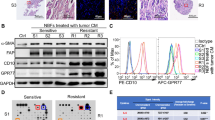 Cancer cells dissociated from transplanted tumor tissues or from culture plates were counted and resuspended in 100 μl of HBSS containing 2% heat-inactivated FBS (HIFS) and 105 cells. Five microliters of mouse IgG solution (1 mg/ml) was added and incubated on ice for 10 min. According to the manufacturer’s recommendation, appropriate antibodies were added and incubated for 30 min on ice. Then, cells were washed twice with HIFS and resuspended in 0.2 ml of HIFS that contained 7-aminoactinomycin D (7-AAD, 1 μg/ml final concentration). Antibodies used were anti-CD44 (APC) and anti-CD24 (PE), which were purchased from BD Pharmingen (San Diego, CA, USA). Dead cells were eliminated by using viability dye 7-AAD. FACS was performed on a Cyan-ADP 9 (Beckman Coulter, Brea, CA, USA).