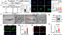 Samples for electron microscopy were fixed in 2.5% glutaraldehyde 0.1 M sodium cacodylate buffer, pH 7.4, overnight at 4 °C and processed for flat embedding in Epon 812 at the Facility for Electron Microscopy Research at McGill University (Montreal, Quebec, Canada). Sections were examined with an FEI Tecnai G2 Spirit 120 kV TEM and Gatan Ultrascan 1000 2k × 2k CCD Camera System Model 895 (FEI Company, Hillsboro, Oregon USA).
