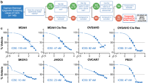 In all, 10 ovarian cancer cell lines, including serous (OV90, 67R, BG1, BR, SKOV3, and OVCAR3), endometrioid (TOV112D and MDAH2774), and clear-cell (TOV21G and ES2) carcinomas were exposed to bortezomib (Figure 1a). TOV112D, OVCAR3, and TOV21G cells demonstrated the highest sensitivity to bortezomib (mean effective concentration (EC50)): 0.05–0.1 μM). ES2, BG1, OV90, and MDAH2774 cells showed an intermediate sensitivity to bortezomib (mean EC50: 1–10 μM), whereas 67R, BR, and SKOV3 cells had the highest bortezomib resistance. Bortezomib induced a higher cytotoxicity in the TOV112D and TOV21G cells than in BR and SKOV3 cells, respectively (Figure 1b). In general, bortezomib promoted caspase-3 activation in a dose-dependent manner, despite significant differences in terms of sensitivity (high in TOV112D and TOV21G cells, and low in BR and SKOV3 cells; Figure 1c). Bortezomib induced apoptosis, which was shown by the upregulation of both proapoptotic proteins p21 and p27 (resulting in an arrest of the cell cycle), increased apoptotic markers (cleaved-PARP and cytochrome c release), and the downregulation of antiapoptotic proteins (Bcl-2, Bcl-XL, and p-Bad; Figure 1d).