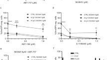 Cells were harvested with accutase treatment when adequate, washed with PBS, lysed and heated at 95 °C for 5 min (Laemmli buffer), 70 °C for 10 min (Bolt sample buffer) or 85 °C for 2 min (Tricine sample buffer). Extracts were separated by SDS-PAGE either on 12.5% gels (EZ-run, Fisher Scientific, Schwerte, Germany), 4–12% Bolt gels (Life Technologies) or 16% Tricine gels (Life Technologies), and proteins were transferred onto nitrocellulose membranes (0.2 μm). Membranes were probed with anti-mouse A1 (rat monoclonal, kindly provided by Marco Herold, WEHI, Melbourne, Australia), anti-human A1 (rabbit polyclonal, kindly provided by Jannie Borst), anti-mouse Mcl-1 (Rockland, Limerick, PA, USA, #600-401-394), anti-human Mcl-1 (BD, Biosciences, Heidelberg, Germany, #559027), anti-mouse Bcl-2 (BD, clone 3F11), anti-Bcl-xL (NEB, Frankfurt, Germany, clone 54H6) or anti-GAPDH (Millipore, Darmstadt, Germany, clone 6C5) or anti-β-actin (Sigma, clone AC-15) antibodies. Proteins were visualized using peroxidase-conjugated anti-rabbit (Sigma), anti-mouse (Dianova), anti-hamster (Dianova) or anti-rat (NEB) antibodies by enhanced chemoluminescence detection (ECL Prime, GE Healthcare, Dornstadt, Germany; SuperSignal West Femto Substrate, Pierce, Fisher Scientific, Schwerte, Germany).