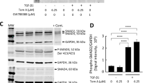 Human TGFβ1 (Peprotech, no. 100-21) was suspended in vehicle containing BSA, as recommended by the manufacturer, at 10 μg/ml stock concentration. Aliquots were kept frozen at −20 °C until used. GKT137831 was a gift from Genkyotex (Geneva, Switzerland), JQ1 and LY2157299 were purchased from Apexbio (Houston, TX, USA) and Can508 was purchased from Santa Cruz (Dallas, TX, USA).