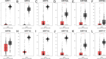 Keratins are the intermediate filament forming proteins of epithelial cells. Thus far, there are 54 known mammalian keratins, 28 type I (acidic, KRT9-23) keratins and 26 type II (basic-to-neutral, KRT1-8) keratins.11 Keratin activity is involved in cancer cell growth, invasion, metastasis and treatment responsiveness. The role of keratins as multifunctional regulators of epithelial tumorigenesis merits further exploration.12 KRT23 transcripts were highly induced in AsPC-1 cells (a human pancreatic cancer cell line) following treatment with a histone deacetylase inhibitor,13 and KRT23 is considered a tumor-associated serum antigen in patients with hepatocellular carcinoma.14