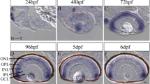 The eyeballs were isolated from the adult zebrafish and were fixed in the 4% paraformaldehyde (diluted in PBS) immediately. The eyes could be fixed at room temperature for 4–6 h or at 4 °C overnight. For the next step, we washed the tissue with PBS for three times and 15 min each time. The sucrose was diluted to a final concentration of 30% in the PBS. The zebrafish eyeballs were dehydrated in the 30% sucrose solution overnight at 4 °C. The tissue settled down at the bottom of the tubes when the dehydration was completed. And then, we embedded the eyeball in the OCT compound and then frozen them at −25 °C. Embedded tissues were sliced along the vertical meridian of each eyeball and sectioned each slice to 20 μm thickness. For the small fish that was <10 days of age, the whole body was fixed for the frozen section and each slice was 8 μm thick.