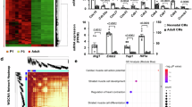 N-cadherin expression in embryonic stem cell-derived AHF cardiac progenitors. (A) “Cell-cell adhesion” genes enriched in embryonic stem cell-derived cardiac progenitor cells identified through the analysis of the microarray dataset reported by Domian et al.20. (B) Quantitative PCR analysis of N-cadherin expression (Cdh2) in cardiac progenitor cells (CPCs) derived from day 6 embryoid bodies (EBs) compared to non-cardiac cells (control) isolated from the same EBs. Error bars indicate SD, n = 3 experiments, *P < 0.05, evaluated by Student's t-test. (C) Representative sagittal section of wild-type mouse embryo (E9.5) immunostained for E-cadherin (red). Enlarged image shows a lack of E-cadherin expression in the PM (indicated by white arrows). Nuclei were marked by DAPI. Scale bar, 200 μm. (D) Sagittal section of wild-type mouse embryo (E9.5) immunostained for N-cadherin (red) and Mef2c (green). N-cadherin expression increases anteriorly towards the outflow tract (OFT) (yellow arrows). Coincident with the increase in N-cadherin expression was an increase in Mef2c expression, an important myocardial cell differentiation marker. Nuclei were marked by DAPI. Scale bar, 200 μm. (E) Immunofluorescence on sagittal section of wild-type mouse embryo at E9.0. N-cadherin (red) is weakly expressed in the Isl1+ (green) CDCs in the AHF (enlarged image). Arrows indicate strong N-cadherin expression in differentiated cardiomyocytes within the heart tube. Section orientation is as shown: A, anterior; P, posterior; D, Dorsal; V, ventral. Scale bar, 20 μm. (F) N-cadherin expression in CPCs compared to cardiomyocytes (CMs). The analysis was based on microarray datasets reported by Domian et al.20.