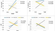 Positive associations were observed between dietary antioxidant capacity and adiponectin concentration, as assessed with FRAP (b±s.e.=0.012±0.005, P=0.018 per 1 mmol Fe (II)/day), TRAP (b±s.e.=0.030±0.013, P=0.017 per 1 mmol trolox equivalent/day) and TEAC (b±s.e.=0.025±0.012, P=0.042, per 1 mmol trolox equivalent/day) in multiadjusted analysis. Moreover, a negative relation of dietary antioxidant indices with inflammatory markers was revealed.