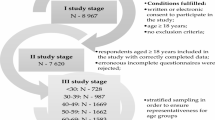 The SF-36 comprises eight domains: “physical functioning” (ten items), “role physical” (four items), “bodily pain” (two items), “general health” (five items), “vitality” (four items), “social functioning” (two items), “role emotional” (three items), and “mental health” (five items). Two standardized summary scores—the physical component summary and the mental component summary—were calculated based on the subscales. The physical component summary score was calculated using the four subscales in the physical domain (physical functioning, role physical, bodily pain, and general health), and the mental component summary score was calculated from the four subscales in the mental domain (mental health, vitality, social functioning, and role emotional). Response scales ranged from “yes/no” to six-point Likert scales, and Cronbach’s alphas for the subscales ranged from 0.73 to 0.92. Additional details regarding the measures for this study can be found in the Supplementary Methods online.