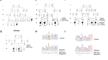 We identified a total of 11 likely causal autosomal recessive variants in genes that had only been linked to human phenotypes in an autosomal dominant fashion, five of which are described here for the first time (pedigrees are shown in Supplementary Figure S1 online). Unless stated otherwise, the heterozygous parents and siblings were asymptomatic. These variants fall into three categories and are described in detail below.