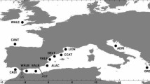 Third, the classical multidimensional scaling analyses plots based on both types of genetic distances separated clearly the group of the two Mediterranean samples from the populations of the Atlantic (Figure 3). Both plots had a stress value below 0.20, suggesting interpretable information concerning intersite relationships.