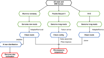 AFLP was carried out according to the method of Kashkush et al. (2001). Briefly, 0.5 μg of genomic DNA from three male and three female individuals was digested with EcoRI and MseI and ligated to adaptors. The digestion/ligation reaction was carried out at 37 °C for 2 h. The pre-selective PCR was carried out with primers complementary to the core adaptor primer, and selective amplification was carried out with [γ-32P]ATP end-labeled EcoRI primer and other primers complementary to the MseI adaptor sequence, with three additional random nucleotides to each primer. The PCR products were mixed with 20 μl of formamide dye (98% formamide, 10 mM EDTA, 0.1% (w v−1) bromophenol blue, 0.1% (w v−1) xylene cyanol), heated at 95 °C for 5 min and separated on 5% denaturing polyacrylamide standard sequencing gel (40% acrylamide:bisacrylamide at a 1:20 ratio, 7.5 M urea, 1 × Tris borate EDTA-TBE buffer, 43 cm long) at 55 W for 1.5 h (after 40 min of pre-run under the same conditions). Gels were then dried on a gel drier for 2 h at 70 °C and exposed to X-ray film (Fuji, Tokyo, Japan) for about 16 h at room temperature. Unique male and female bands were extracted from the gel, re-amplified under the same PCR conditions as used for selective amplification, cloned and sequenced.