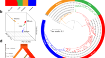 To get information on the partitioning and distribution of gene pools, we performed STRUCTURE 2.3.2 analyses (Pritchard et al., 2000) of the AFLP data using the recessive allele model implemented for analyses of polyploids and dominant data (Falush et al., 2007). First, we analyzed diploids and tetraploids separately with the respective settings of ploidy levels to get insights into structuring of partitions within cytotypes (Figure 1a); individuals representing other, infrequent cytotypes (3 × , 5 × and 6 × ) were excluded from this analysis. In a third analysis, we focused on the geographical structure of partitions over the whole distribution area for all cytotypes, and thus we treated all samples as diploids (Figure 1b). For all three analyses, we applied admixture models with correlated allele frequencies without using a priori information on population origin. We performed ΔK- plots after Evanno et al. (2005) ranging from 1–11 (for diploids), 1–43 (for tetraploids) and 1–56 (for the whole data set) to determine the optimal number of partitions (K’s) (Supplementary information). For each value of K, we ran 10 replicate chains of 500 000 MCMC iterations and discarded the first 10 000 burn-in iterations (detailed settings are given in Supplementary information). Barplots of the individual’s posterior assignment probabilities were created by using CLUMPP 1.1 (Jakobsson and Rosenberg, 2007) and DISTRUCT 1.1 (Rosenberg, 2004) and mapped on the geographical distribution (Figure 1). All calculations were performed at the server Bioportal of the University of Oslo (Kumar et al., 2009). To detect genetic clusters and identical genotypes, we produced a neighbor-joining tree based on the Jaccard index using FAMD 1.23 (Schlüter and Harris, 2006; Supplementary information). Bootstrap support of the neighbor-joining tree was computed with a random resampling of loci and replacing missing data with 1000 repeats, and a majority rule consensus tree was obtained in SumTrees (Sukumaran and Holder, 2009).