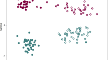 Individual sample diversity (i.e., α diversity) was calculated: the number of distinct OTUs observed per sample (Sobs) and Shannon and Simpson indices (both related to the frequency of individual OTUs within a sample). To reduce biases in sequencing depth on these indices, a re-sampling (i.e. bootstrap) scheme was used to estimate α diversity indices for each sample. A bootstrap sample was obtained via randomly sampling a minimum number of sequences from the sequences in each sample (i.e., rarefying). All indices are calculated from each bootstrap sample at the rarefaction point – a total of 25 bootstraps were conducted. Mean indices were calculated from these bootstrap samples. Next, we calculated diversity indices among samples (i.e. β diversity): Morrison-Horn (MH), Bray-Curtis (BC) and ThetaYC (YC) indices. MH measures the similarity between two samples whereas the other two methods measure the dissimilarity between two samples. Both α and β diversity indices were calculated using the Win64 version of the Explicet software29. A principal component analysis was conducted to detect overall differences between samples using the STAMP programme30.