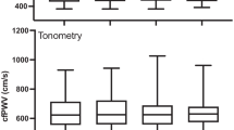 Arterial stiffness assessed by cfPWV is associated with several pathological conditions1, 2, 3, 4 and has been identified as a risk factor for cardiovascular disease.5 This indirect measurement of arterial stiffness is considered the gold standard of PWV measurement,6 and is based on estimating the velocity of the pressure wave travelling between the carotid and femoral arterial sites. Velocity is determined by calculating the transit time (TT) based on foot-to-foot methodology and by measuring the distance between the carotid and femoral recording sites along the body surface using a tape measure.