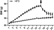 To induce obesity and associated metabolic disorders, male 2-month-old C57BL/6J mice were fed cHF (35% lipid wt wt−1, mainly corn oil) for 4 months. Mice were then fed either (i) for 8 weeks with cHF or with cHF with two different doses (0.5%, 1%; wt wt−1) of CDCA (8-week reversion); or (ii) for 3 weeks with cHF or with cHF with 1% CDCA, or pair-fed (PF) to match calorie intake of the CDCA mice fed ad libitum; mice on standard chow diet were also used (3-week reversion).
