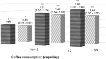 Average daily caffeine intake during pregnancy was categorized as 0, <150 mg per day, ⩾150 mg per day in the overall analysis. In addition, the level of daily caffeine intake amount was used as a continuous variable to evaluate a dose–response relationship. As a result of the skewed distribution of maternal caffeine daily intake, data were log10 transformed to normalize the distribution. In order to keep those without caffeine intake (0 mg per day) during pregnancy in the analysis, we added 1 to all caffeine measurements before log transformation, according to standard practice, resulting in no caffeine intake as ‘0’ on the log10 scale after transformation. All statistical analyses were performed using SAS 9.3 (Cary, NC, USA).