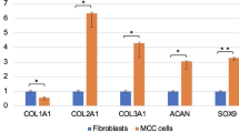 Condylar chondrocytes and disc cells were harvested from nine rats. The tissues were washed 3 times with phosphate-buffered saline (PBS) and digested with 0.2% collagenase I and II (Worthington, Lakewood, NJ, USA) overnight at 37 °C. The cells were passed through a 40-μm cell strainer (Corning, Corning, NY, USA) to obtain single cells before seeding at a density of 20 000 cells per cm2. The culture was maintained in Dulbecco’s modified Eagle’s Medium-Ham’s F12 (DMEM-F12, Biowest, Nuaillé, France) supplemented with 10% foetal bovine serum (FBS, Biowest, Nuaillé, France), 25 μg·mL−1 ascorbic acid 2-phosphate (AA2P, Sigma, St Louis, MO, USA), and 1% penicillin-streptomycin (PS; Life Technologies, Carlsbad, CA, USA) under a humidified atmosphere of 5% CO2 at 37 °C. The medium was changed every alternate day. Chondrocytes were dissociated at confluence using TrypLe (Life Technologies, Carlsbad, CA, USA) and further sub-cultured to passage 2 (P2) to yield a sufficient number of cells for further experiments.