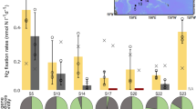 Data retrieved in the ARAs, IRMS data of vertical sections and inhibition experiments as well as NanoSIMS data were analyzed for significant differences using Student’s t-test or analysis of variance (ANOVA) with an alpha error of 0.05 and the Tukey–Kramer honestly significant difference as a multiple means comparison test (JMP Version 7, SAS Institute Inc., Cary, NC, USA). Normal distribution was tested with the Shapiro–Wilk W-test, and in cases where the data did not meet the standard of homogeneity of variance, the Welch ANOVA was used to confirm the initial result. As 15N enrichment levels were very low in Deltaproteobacteria measured by NanoSIMS, the natural abundance values for Deltaproteobacteria were used to test for significant enrichment based on a 95% confidence interval.