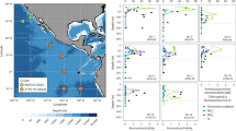 We ran time-course incubations with samples taken from two depths (WW and CDW) at two stations to verify that oxidation rates did not change significantly, for example, due to substrate depletion or growth of ammonia oxidizers, during the 96 h incubations. These experiments were set up in 250 ml bottles as above, with six sets of two treatments plus one filtered seawater blank (18 bottles) per sample. Two treatment bottles and one blank were sacrificed at each of six time points taken over time courses of 139 and 181 h. These data are presented in Supplementary Table 3. AO rates were determined from the slope of linear regressions of the data from a given sample. Although the difference between replicates was >50% for some pairs of replicates, which were discarded for the calculation of AO rates from these time courses, there was no indication that rates changed during the course of these prolonged incubations.