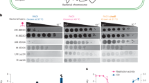 Function of tmRNA is abolished on prophage excision. (a) Survival of cells after exposure to sublethal concentrations of kanamycin (2.5 μg ml−1), gentamicin (1 μg ml−1) and streptomycin (10 μg ml−1) for the wild-type, ΔssrA and ΔCP4So strains. (b) Survival of cells after exposure to sublethal concentrations of gentamicin (1 μg ml−1) for the wild-type, ΔssrA and ΔCP4So strains expressing a full-length ssrA (pHGE-ssrA) or a mutated ssrA (pHGE-ssrA-delU). Data are from three independent cultures and only representative images are shown in a and b. (c) Growth of wild-type, ΔssrA and ΔCP4So expressing a full-length ssrA (pHGE-ssrA) or a mutated ssrA (pHGE-ssrA-delU) in LB medium. Data are from three independent cultures and one s.d. is shown.