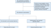 Wagner, A.E., Walton, J.A., Hellyer, P.W., Gaynor, J.S. & Mama, K.R. Use of low doses of ketamine administered by constant rate infusion as an adjunct for postoperative analgesia in dogs. J. Am. Vet. Med. Assoc. 221, 72–75 (2002).