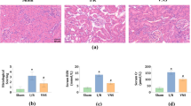 All protocols were approved by the Institutional Animal Care and Use Committee of Columbia University. Male mice under pentobarbital anesthesia were subjected to sham-kidney manipulations, ischemic AKI (20 or 30 min renal ischemia) or non-ischemic AKI (unilateral or bilateral nephrectomy) as described.15, 16 Separate cohorts of mice were subjected to sham operation or 45 min liver IR injury as described previously17 (Supplementary Methods). During hepatic ischemia, we performed sham-kidney manipulations, 20 min renal ischemia, unilateral nephrectomy or bilateral nephrectomy. Five hours after reperfusion, the liver and small intestine tissues were collected to examine tissue injury, pro-inflammatory cytokine mRNA expression (with RT–PCR), leukocyte infiltration (with immunohistochemistry for neutrophils, T-lymphocytes or macrophages), vascular permeability (Evans blue dye (EBD) extravasation) and apoptosis (with terminal deoxynucleotidyl transferase-mediated dUTP nick end-labeling staining and DNA laddering). We also collected portal venous and systemic plasma as well as the liver and small intestine tissues for the measurement of alanine aminotransferase (ALT), bilirubin, creatinine and cytokine levels (TNF-α, IL-6 and IL-17A) at 5 and 24 h after reperfusion. Our previous studies showed that plasma levels of cytokines, creatinine, neutrophil infiltration and ALT peaked between 5 and 24 h after reperfusion.16, 17, 18