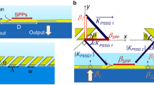 Figure 1b illustrates the ordinary and anomalous refraction and diffraction for the two circular polarization states. For a circularly polarized incident beam at normal incidence, the two ordinary first-order diffracted beams are symmetric about the central ordinary zero order beam along the surface normal. In contrast, the anomalous refracted beam and the two first-order anomalous diffracted beams are shifted towards the same direction relative to their ordinary counterparts. As a result, the two anomalous first-order diffracted beams are not symmetric about the surface normal, which forms the basis of unidirectional SPP excitation at certain optical frequencies.