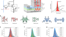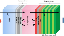 Indium tin oxide-coated distributed Bragg reflector (DBR) substrates composing of two pairs of quarter-wave stacks of alternating layers of titanium oxide (TiO2) and silicon oxide (SiO2) were used for OLED fabrication. The reflectance maxima of the DBR substrates for red, green and blue emitting devices were tuned to 610, 550 and 474 nm, respectively. After ultraviolet ozone treatment for 15 min, a 25-nm-thick poly(3,4-ethylenedioxythiophene)–polystyrenesulfonic acid (PEDOT:PSS) (AI 4803) as a hole injection layer was spin-coated onto indium tin oxide substrates and baked at 180 °C for 15 min in air. To fabricate the devices, the following layers were sequentially deposited by thermal evaporation: a 20- to 45-nm-thick 1,1-bis[(di-4-tolylamino)phenyl]cyclohexane (TAPC) as a hole transport layer, a 20- to 30-nm-thick 4,4-N,N-dicarbazole-biphenyl (CBP) doped with 7 wt% tris(2-phenylpyridine)iridium (Ir(ppy)3) as a green emitter, a 15-nm-thick 3,5′-N,N′-dicarbazolebenzene (mCP) doped with 15 wt% iridium (III)bis [2-methyldibenzo-(f,h) quinoxaline](acetylacetonate) (Ir(MDQ)2(acac)) and a 15-nm-thick 2,2′,2″(1,3,5-benzenetriyl)tris-(1-phenyl–1H-benzimidazole) (TPBi) doped with 15 wt% Ir(MDQ)2(acac) as a red emitter, a 20-nm-thick mCP doped with 5 wt% iridium(III) bis[(4,6-difluorophenyl)-pyridinato-N,C2′] picolinate (FIrpic) as a blue emitter, a 45- to 60-nm-thick tris[3-(3-pyridyl)-mesityl]borane (3TPYMB) as an electron transporting layer for the green and red emitting devices, a 45- to 55-nm-thick 3,5,3″,5″-tetra-3-pyridyl-[1,1′;3′,1″]terphenyl (B3PyPB) as an electron transporting layer for the blue emitting devices, a 1-nm-thick LiF layer as an electron injection layer and a 100-nm-thick aluminum as a cathode. To extract the substrate mode, a macrolens was attached to the substrate using an index matching gel. Current–luminance–voltage characteristics were measured using a Keithley Series 2400 source meter and a Keithley Series 6485 picoammeter with a calibrated Newport silicon photodiode. The luminance was calibrated using a Konica Minolta luminance meter (LS-100). The electroluminescence spectra were obtained with an Ocean Optics HR4000 spectrometer.