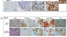FGFR2b immunohistochemistry was performed manually using the primary FGFR2b antibody (FPR2-D provided by Five Prime Therapeutics; 1:200 dilutions). This is a recombinant IgG2a mouse monoclonal antibody that recognizes only the FGFR2b isoform. Formalin-fixed paraffin-embedded tumor samples were freshly cut to 4-μm-thick sections and dried at 60 °C for 30 min. Antigen retrieval was performed for 20 min using the LOW buffer (pH 6.0) in a 97 °C water bath. Endogenous peroxidase blocking was conducted for 5 min. Samples were incubated with the primary antibody for 60 min in room temperature. Subsequently, the sections were incubated with Peroxidase/DAB-10 min K5007 from the DAKO EnvisionTM Detection Kit (DAKO, Glostrup, Denmark) for 30 min. The immunohistochemistry results were scored independently by two pathologists (ASM and KMK).