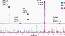 In exome array analyses, no single variant exceeded a significance threshold of P<4.3 × 10−7, corresponding to a Bonferroni correction for 115 000 variants tested, in either the discovery or combined meta-analyses (Supplementary Data 3, QQ plot given in Supplementary Figure 8, λGC=1.11). Table 2 lists the 10 most strongly associated exome variants from the meta-analysis. Of interest is rs1546308 (P=1.10 × 10−6), a missense variant in SLCO1B7 and intronic to SLCO1B3, that is 92 kb from the SNP that emerged as the only genome-wide significant variant from GWAS meta-analysis. rs1546308 is predicted to be benign and was present in 15.8% of cases versus 5.8% of controls in our sample and 9.3% of cases versus 5.6% of controls in the CIAC sample.