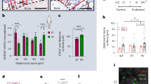 a–d, Expression of neuroglial gene sets in MPN BM Nes-GFP+ cells. a–c, Selected transcript expression in fragments per kilobase of exon per million fragments mapped (FPKM) of mesenchymal genes (a), HSC-niche related genes (b) and neural-related genes (c). RNA-Seq in CD45−CD31−Ter119−GFP+ cells isolated from compound MPN and control mice 6 weeks after pIpC treatment (samples pooled from 3 mice). d, Gene set enrichment analyses (GSEA) of RNA-Seq data. e, f, Enrichment plot of coordinated changes in neuroactive ligand-receptor interactions (e) and the transcriptome of neurons, astrocytes and oligodendrocytes (f). g, h, BM Nes-GFP+ cells are different from sympathetic nerve fibres and mature Schwann cells. Immunostaining of tyrosine hydroxylase (TH) to visualize sympathetic nerve fibres (g) and glial fibrillary acidic protein (GFAP) for mature Schwann cells (h) in Nes-gfp BM. Note the close association of Nes-GFP+ (green) cells to distinctive TH+ or GFAP+ (red) cells. i, BM biopsies from (left and middle) control or (right) MPN patients immunostained with (left) secondary Ab as negative control or (middle and right) anti-TH antibodies. Nuclei were counterstained with DAPI (blue). Scale bars, 75 µm (g), 50 µm (h), 100 µm (i).