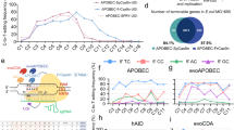 (a) Schematic diagram illustrating the design of expression vectors of dCpf1-BE0 and dCpf1-BE0ΔiNLS. (b) The C-to-T editing frequencies of the indicated cytosines were individually determined at different genomic target sites under the treatment of dCpf1-BE0 (blue) or dCpf1-BE0ΔiNLS (green). (c) The normalized C-to-T editing frequencies induced by dCpf1-BE0 and dCpf1-BE0ΔiNLS in genomic DNA, setting the ones induced by dCpf1-BE0 as 100%. (d) Statistical analysis of the normalized C-to-T editing frequencies. The dCpf1-BE0 induced significantly higher C-to-T editing frequencies than dCpf1-BE0ΔiNLS. P values, one-tailed Student’s T test. The median, interquartile range (IQR) and 1.5 × IQR are shown. n = 54 independent samples from 3 independent experiments. (e) The indel frequencies were determined at indicated loci in genomic DNA. 293FT cells were either treated with dCpf1-BE0 (blue), with dCpf1-BE0ΔiNLS (green) or non-transfected (gray) before deep sequencing. Asterisk denotes an unusually high basal indel frequency (or amplification, sequencing, alignment artifact) at the examined RUNX1 site in the non-transfected 293FT cells. Means ± s.d. were from three independent experiments.