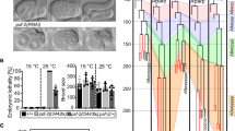 Transgenic animals were obtained by microinjecting as described48. The Pced-3ced-3::gfp fosmid (pBC1378) (0.5 ng μl−1) was co-injected into N2 with the plasmid pRF4 (150 ng μl−1), which contains the rol-6(su1006dm) allele, which causes a dominant Rol phenotype49. Three lines carrying extrachromosomal arrays were obtained, one of which was used to stably integrate the array into the genome by ultraviolet radiation. Three integrated lines were obtained. The integrated allele used for our studies was named bcIs109 and backcrossed twice to wild type. bcIs109 can restore the wild-type phenotype in a ced-3(n717) mutant (Supplementary Fig. 1b).