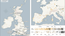 Within the last 2,000 years alone, the British Isles have received multiple well-documented immigrations. These include military invasions and settlement by the Romans in the first century CE, peoples from the North Sea coast of Europe collectively known as the Anglo-Saxons between ca. 400 and 650 CE (Fig. 1a), Scandinavians during the late Saxon ‘Viking period’ 800–1,000 CE and the Normans in 1,066 CE (ref. 1). These events, along with prior and subsequent population movements, have led to a complex ancestry of the current British population. Although there is only a slight genetic cline from north to south at a coarse level2,3, recent analyses have revealed considerable fine-scale genetic structure in the Northern and Western parts of Great Britain, alongside striking homogeneity in Southern and Eastern England4 in the regions where archaeologists identify early Anglo-Saxon artifacts, cemeteries and communities. A variety of estimates of the fraction of Anglo-Saxon genetic ancestry in England have been given5,6,7,8, with the recent fine structure analysis suggesting most likely 10–40% (ref. 4).