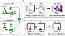 Gene expression noise data were obtained from Newman et al.7 Noise values for every gene were computed as the ratio of the s.d. over the mean of fluorescence intensity for the entire cell population (CV) and the data was normalized to arrive at an abundance-independent measure of noise, called distance from the running median CV (DM). We used 1,804 protein-coding genes for which other genome-wide information was available, and for all calculations we used the DM values in yeast peptone dextrose (YPD) conditions as noise value.