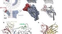 Sheep red blood cells (sRBC) were washed with DGHB++ pH 7.4 (Dextrose Gelatin HEPES Buffer; with 2.5% (w/v) D-glucose, 0.1% (w/v) gelatin, 5 mM HEPES pH 7.4, 71 mM NaCl, 0.15 mM CaCl2, 0.5 mM MgCl2,). In all, 6.5 × 108 sRBC were sensitized with an equal volume of anti-sheep antibody to a concentration of 0.75 mg ml−1 and incubated at 30 °C for 30 min to activate the classical pathway. Excess antibody was washed off before reactions. The lysis reactions were set up in triplicate with 0.2 ml sRBC (3.75 × 106 cells), 1 μl of C9-depleted serum (Complement Technology, USA) and 15 μl of C9 (initial concentration 8 μg ml−1) and twofold dilutions of purified C9 in thin-walled PCR tubes. Reaction tubes were incubated at 37 °C on a PCR heat block for 30 min and immediately placed at 4 °C, then centrifuged for 20 s. The supernatant (150 μl) of the lysis reactions was transferred to a 96-well plate and absorbance at 405 nm was measured. The reactions were normalized to 0% lysis with a buffer control or to a reaction containing PlyA and PlyB13 for 100% lysis.