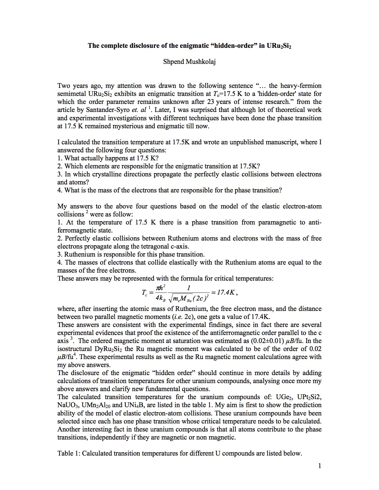 Das, P. et al. Chemical pressure tuning of URu2Si2 via isoelectronic substitution of Ru with Fe. Phys. Rev. B 91, 085122 (2015).